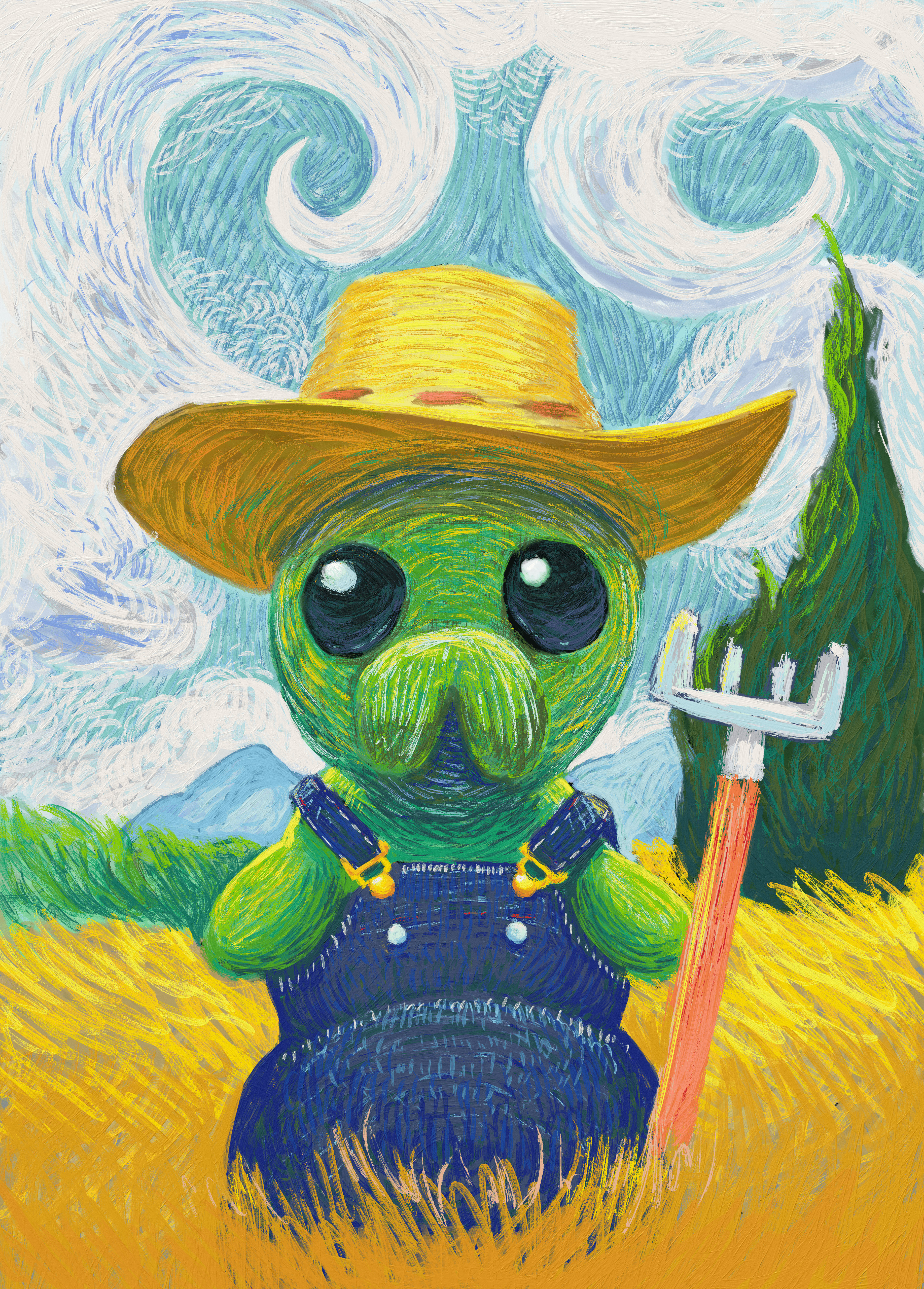 You may notice recurring characters in the gallery — this is intentional. The more cartoonish, playful figures belong to a series I create for a digital trading card game called Grub TCG. This project allows me to experiment with a wide range of styles and techniques, serving both as creative practice and as contributions to the game for a friend.